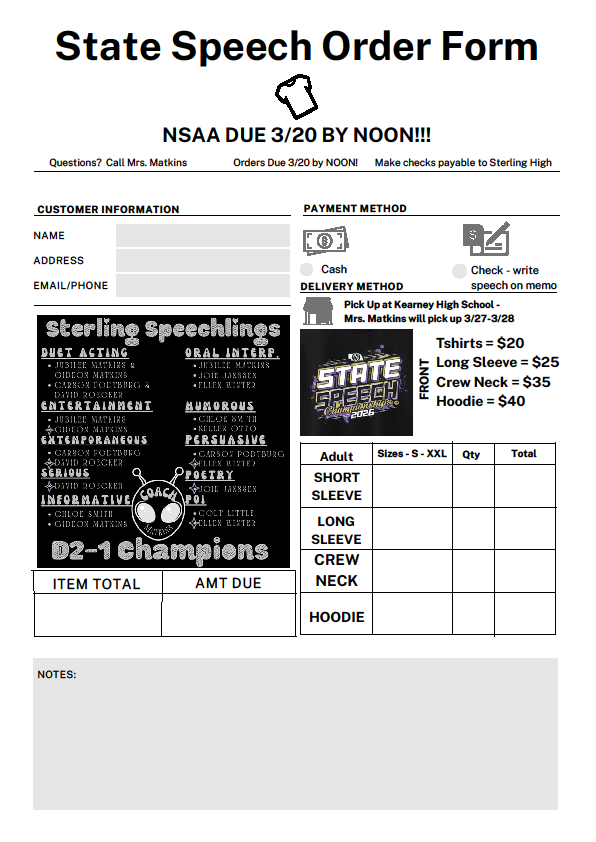 Orders with payment are due by TOMORROW (3/20) @ 12PM.